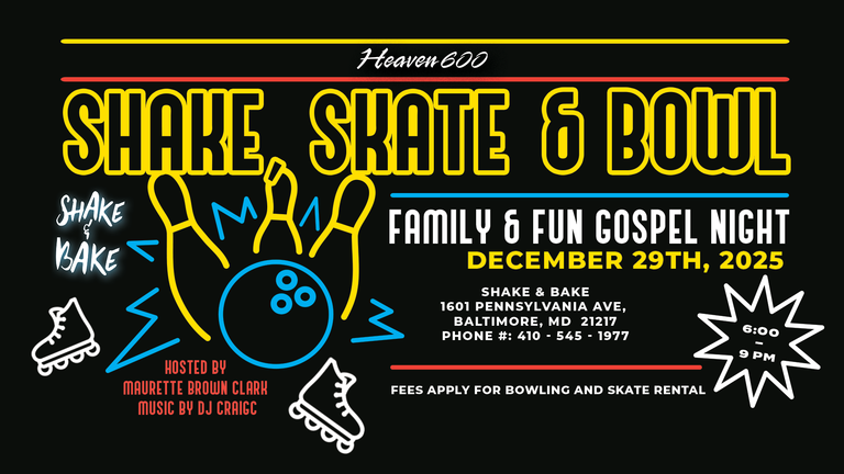 HEAVEN 600 SHAKE, SKATE & BOWL: FAMILY & FUN GOSPEL NIGHT 🎳